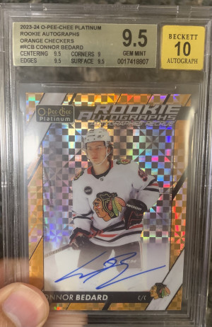2023-24 Upper Deck OPC Platinum CONNOR BEDARD Orange Checkers Auto/15 BGS 9.5/10