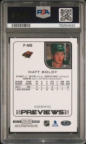 2022 Upper Deck O-Pee-Chee O-Pee-Chee Platinum Previews Matt Boldy Opc Plt.previews-Cosmic