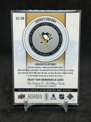 Sidney Crosby 2015-16 Upper Deck Series One UD Game Jersey #GJ-CR