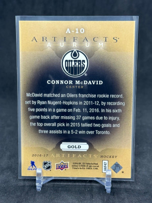 Connor McDavid 2016-17 Upper Deck Artifacts Aurum Gold Insert #A-10 Oilers