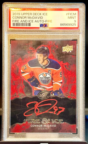 Connor McDavid 2019-20 UD Ice Fire & Ice {FIRE} Auto PSA 9