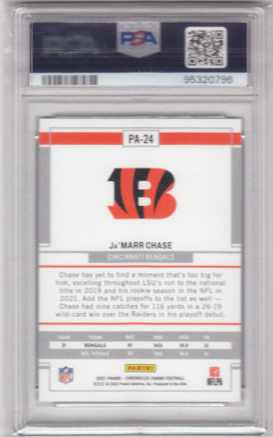 2021 Chronicles Panini PINK PA-24 Jamarr Chase Cincinnati Bengals RC PSA 9 Mint