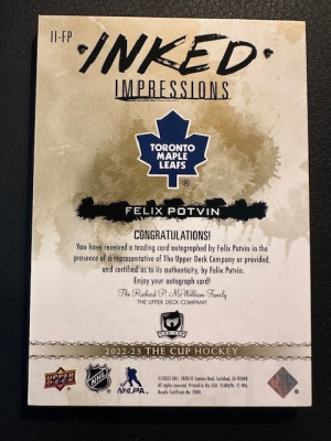 2022-23 The Cup - Felix Potvin - Inked Impressions /25