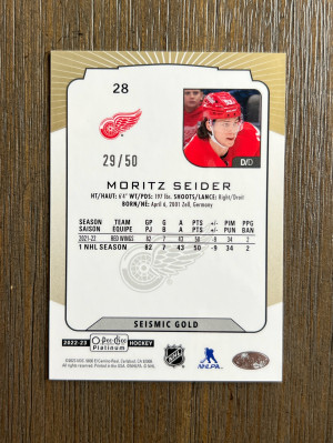 2022-23 OPC Platinum Moritz Seider Seismic Gold /50 #28 Red Wings