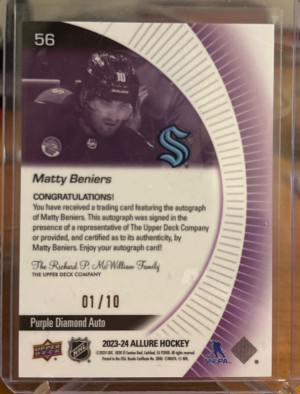 2023-24 Allure Matty Beniers Purple Diamond Auto 1/10