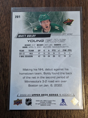 2022-23 upper deck Young guns Matt boldy sgc 9.5