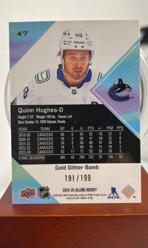 2024-25 Upper Deck Allure Quinn Hughes #47 Gold Glitter Bomb 191 / 199