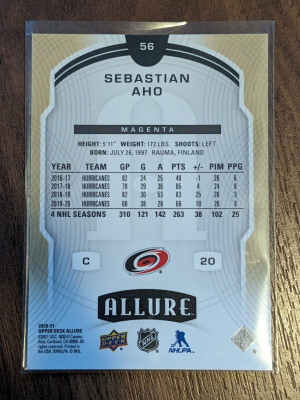 Magenta Sebastian Aho SSP2020-21 Upper Deck Allure Hurricanes #56 1:150