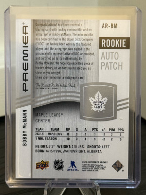 23-24 Premier Bobby McCann Rookie Auto Patch /249