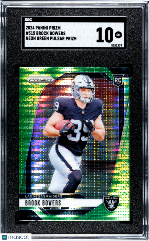 2024 Panini Prizm Brock Bowers #315 Neon Green Pulsar Rookie Raiders SGC 10