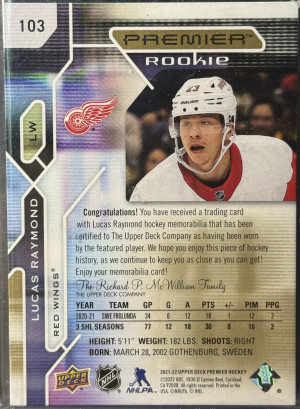 Lucas Raymond Premier Rookie Patch /25