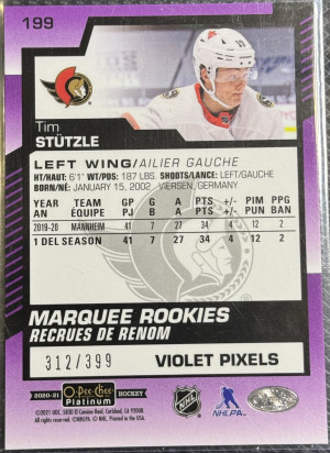 Tim Stutzle O-Pee-Chee Platinum Violet Pixels Rookie /399