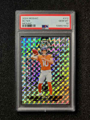 Bo Nix 2024 Panini Mosaic #312 Silver Mosaic Prizm Rookie RC PSA 10
