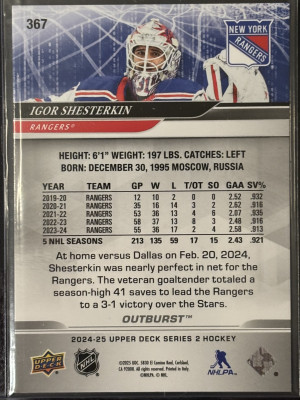 24-25 Upper Deck Igor Shesterkin red outburst /25