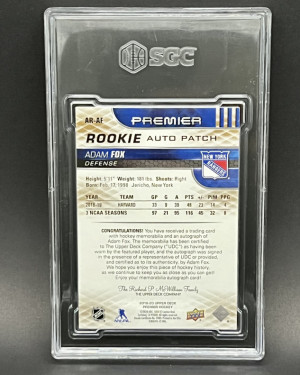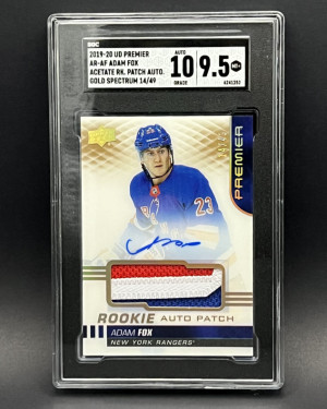 2019 Upper Deck Premier Adam Fox Acetate RPA Gold Spectrum /49 SGC 9.5 Auto 10