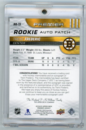 2019-20 Upper Deck Premier #AR-TF Trent Frederic Acetate Rookie Patch Autograph 99/149