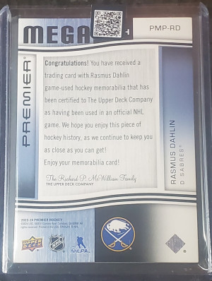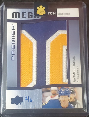 2023-24 Upper Deck Premier Premier Mega Patch Sleeve Numbers Rasmus Dahlin 3/6