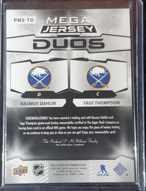 2022-23 UD Premier Mega Jersey Duos Rasmus Dahlin & Tage Thompson /49 Sabres