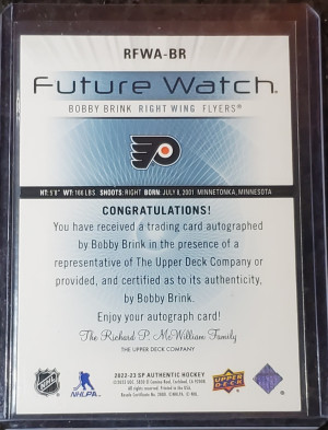 BOBBY BRINK 2022-23 SP AUTHENTIC RETRO FUTURE WATCH AUTO /699