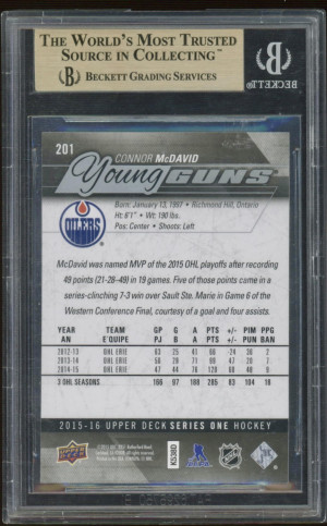 CONNOR MCDAVID YOUNG GUNS BGS BECKETT GEM MINT 9.5