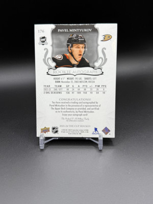 2023/24 UD CUP HOCKEY PAVEL MINTYUKOV GOLD ROOKIE ON CARD RARE SP 25/36