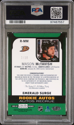 2021 Upper Deck O-Pee-Chee Platinum Rookie Autograph Mason Mctavish Rookie Auto-Emerald Surge