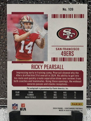 2024 Panini Contenders #109 Conference Ticket Ricky Pearsall On Card Autograph Numbered 53/75