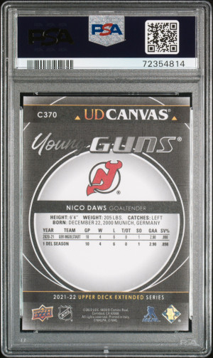 2021-2022 Upper Deck Nico Daws UD Canvas Young Guns-Black PSA 10 Gem Mint