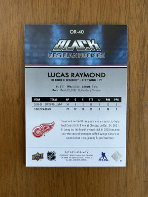 2021-22 SPx UD Black Obsidian Rookies Lucas Raymond #OR-40 (235/349)