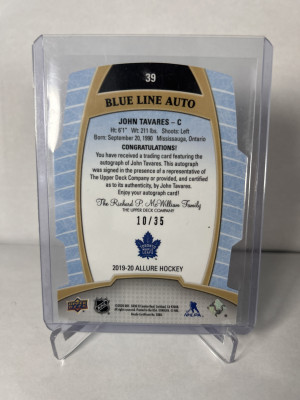 2019-20 Upper Deck Allure Blue Line Auto /35 John Tavares #39