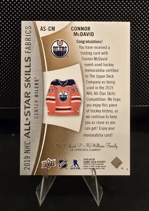 2019-20 SP Game Used Hockey All-Stars Skills Fabrics #AS-CM Connor McDavid 13/35