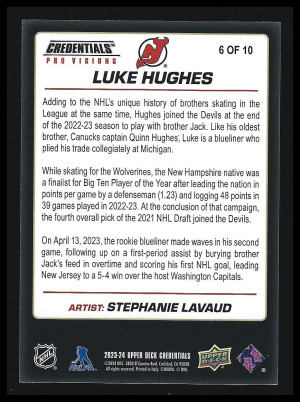2023-24 Credentials Luke Hughes Pro Visions Rookie Card RC