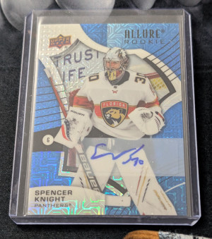 2021-22 Upper Deck Allure Hockey Spencer Knight Blue Line Rookie Auto /35