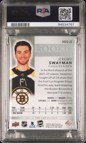 2021 UD The Cup Rookie Class Of 22 Jeremy Swayman #2022JS 030/249 PSA 9