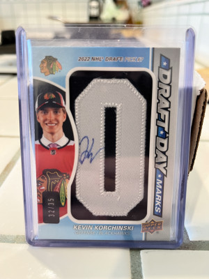 Kevin Korchinski 2023-24 SP Game Used Draft Day Marks “O” #32/35