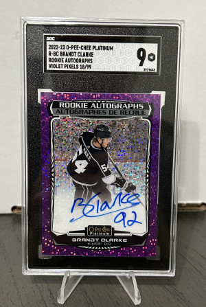 22-23 O-Pee-Chee Platinum Brandt Clarke Violet Pixels Rookie Auto /99 Graded SGC 9