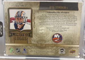 2022-23 The Cup Ilya Sorokin Limited Logos 3 Color Patch Auto /50