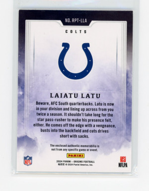 2024 Panini Origins LAIATU LATU Rookie RC JERSEY PATCH #/199 Indianapolis Colts