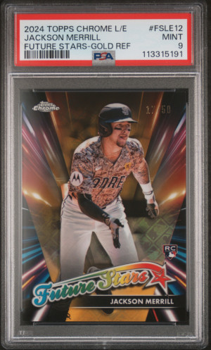 2024 Topps Chrome JACKSON MERRILL Rookie RC GOLD REFRACTOR LOGOFRACTOR FSLE-12 /50 - PSA 9