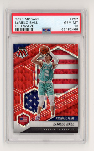 2020-21 Panini Mosaic LAMELO BALL Rookie RC RED WAVE PRIZM #257 Hornets - PSA 10 - Charlotte Hornets