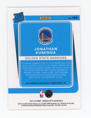 2021-22 Donruss Optic JONATHAN KUMINGA Rookie RC ON-CARD AUTO AUTOGRAPH #190 SSP