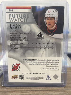 23-24 SP Authentic Future Watch Auto Simon Nemec /999