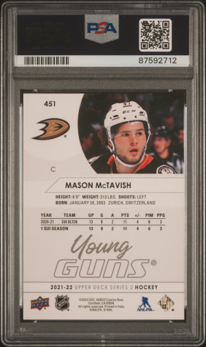 2021-2022 Upper Deck Mason Mctavish Young Guns PSA 9 Mint