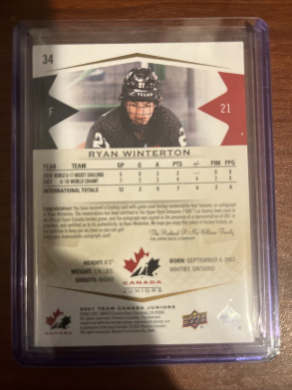 You are purchasing a 2021 Upper Deck Team Canada Juniors - [Base] - Patch Autographs Ryan Winterton #34 . You will receive the exact card in the photographs. Thank you for looking.