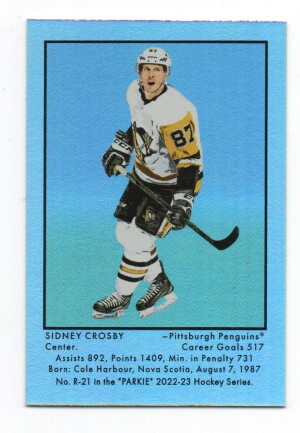 I started collecting hockey cards in 1980 and took a few breaks with school, kids, life... but rediscovered it several years ago and have had fun learning new ways to collect. My PC is pretty 'boring' as I collect base sets primarily. I have more recently started collecting HHOF RCs (PSA-graded) and some Steve Yzerman and Nicklas Lidstrom cards (graded or raw). When trading, I typically look to trade for PC, nicer cards, or stuff that I can move locally here in central PA (typically Crosby/Lemieux/Gretzky/McDavid, but there are others on occasion). Thanks for taking a look! Shipping Note - I always ship by padded mailer, even for the low end. If you want PWE, let me know and I will work with you on it.
