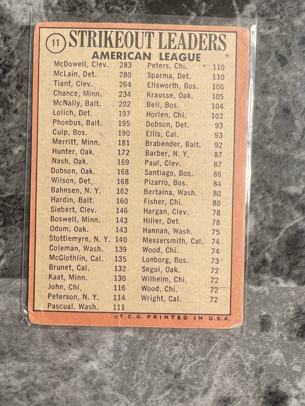 1969 Topps AL Strikeout Leaders Denny McLain, Luis Tiant, Sam McDowell #11 Fair Condition