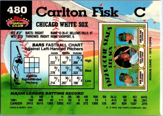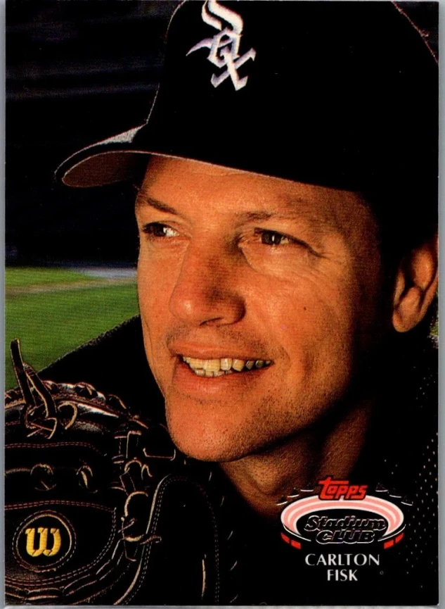 This is a nice example of a 1992 Stadium Club #480b Carlton Fisk