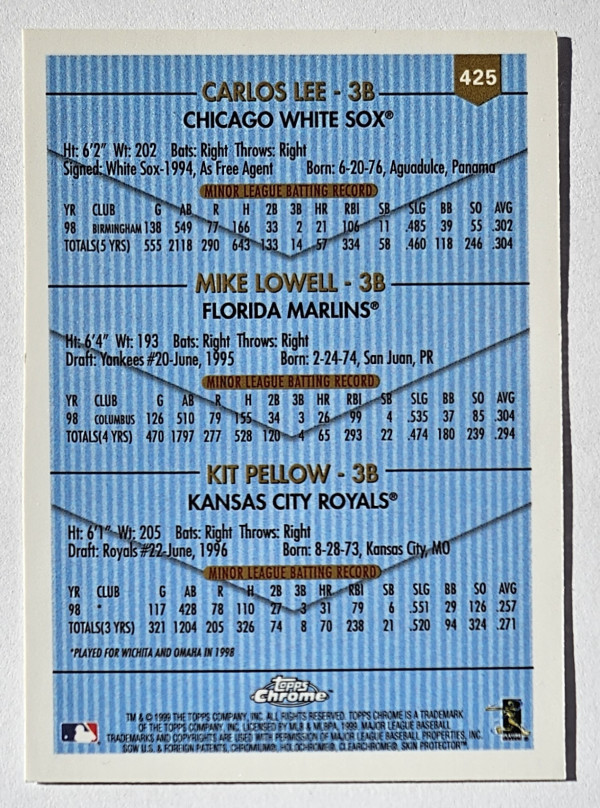 1999 Topps Chrome Prospects. C. LEE, M. LOWELL, K. PELLOW #425.