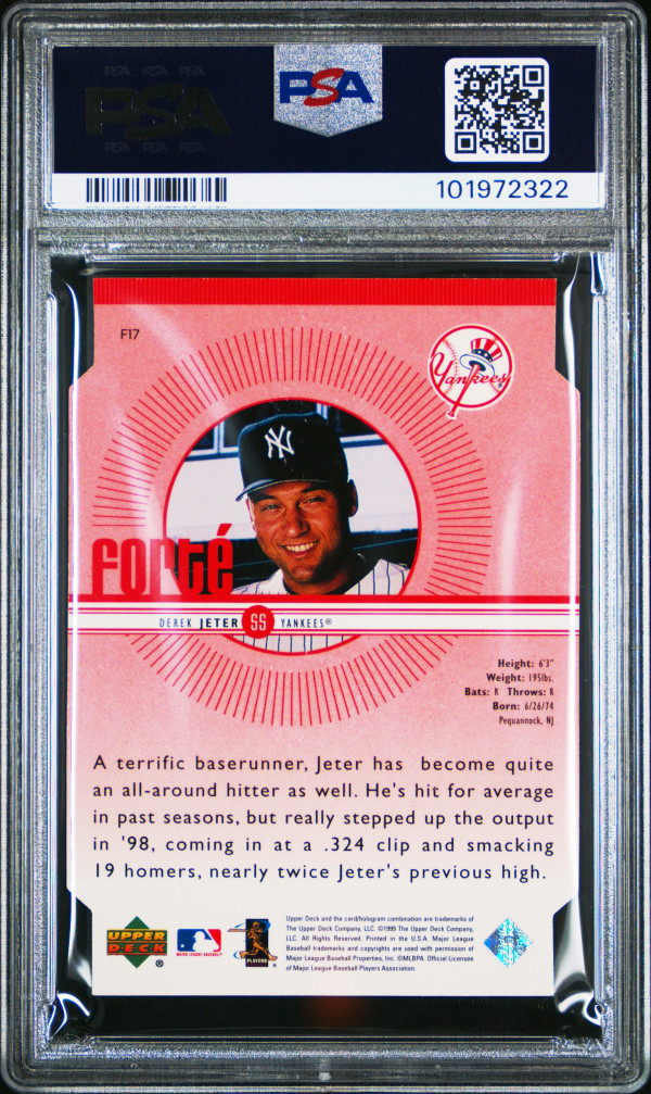 You are purchasing a 1999 Upper Deck Forte Derek Jeter #F17 Triple 090/100 PSA 8. You will receive the exact item in the photographs. Thank you for looking.
