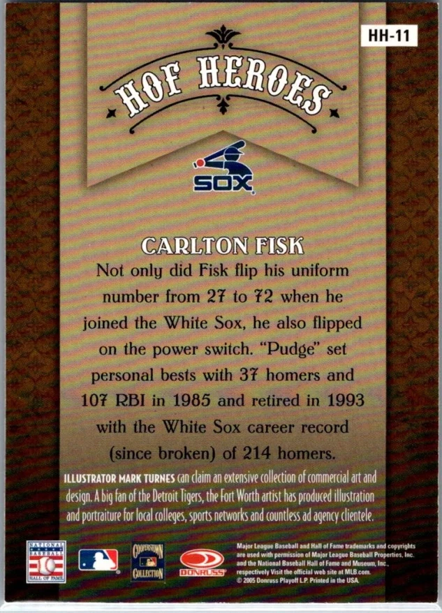 This is a nice example of a 2005 Donruss Diamond Kings #HH-11 Carlton Fisk HOF Heroes